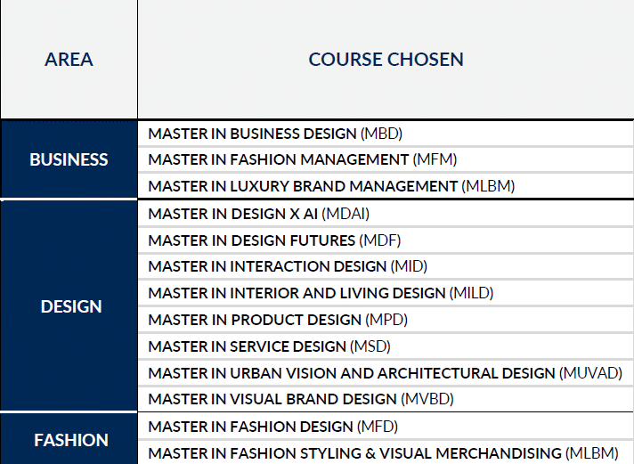 Domus Academy master programları neler?